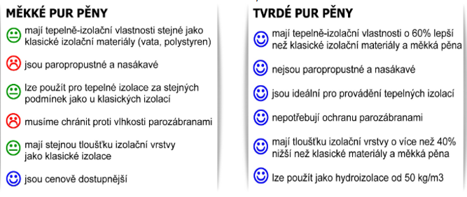 Měkká pěna je lehká, pružná a snadno se přizpůsobí tvaru konstrukce. Má otevřenou buněčnou strukturu, díky které je prodyšná a vhodná pro aplikace, kde je důležitá paropropustnost. Ideální je například pro zateplení podkroví nebo stropů. Pro dosažení optimálních izolačních vlastností se aplikuje od tloušťky cca 150 mm.